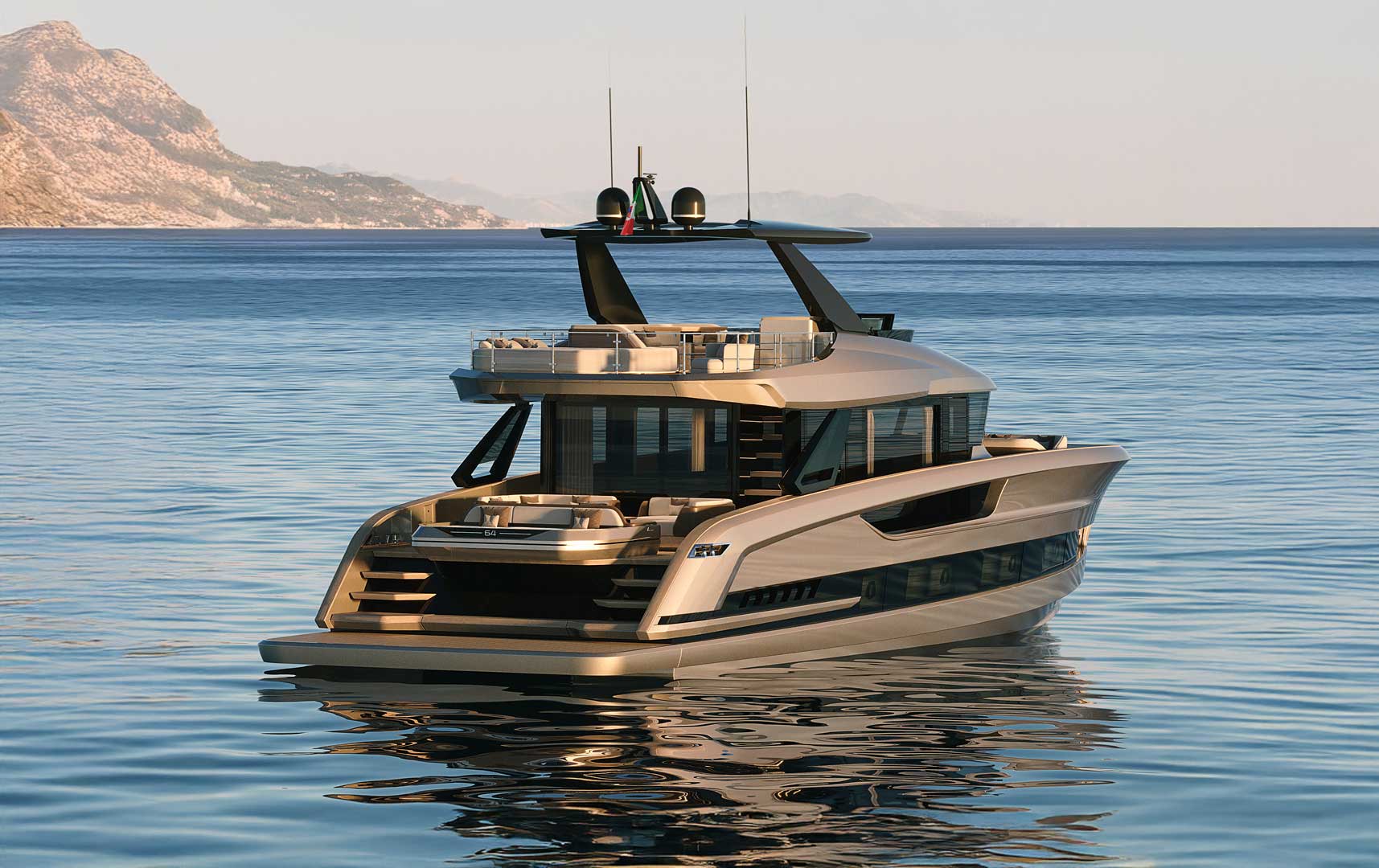 Engineered with a focus on performance at sea, the 64 Long Range delivers a smooth and stable ride even in challenging conditions. Its hull design ensures safety, comfort, and confidence whether cruising or at anchor.