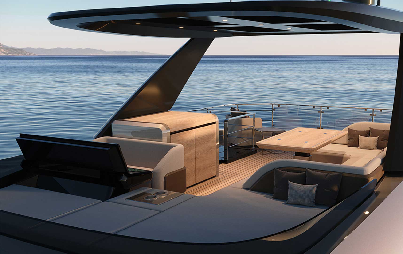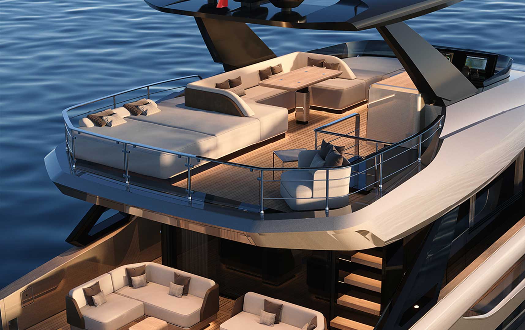 Every element on deck is designed to enhance life at sea — from panoramic lounging areas to practical social spaces — creating a fluid, uninterrupted connection between comfort, functionality, and the surrounding environment.
