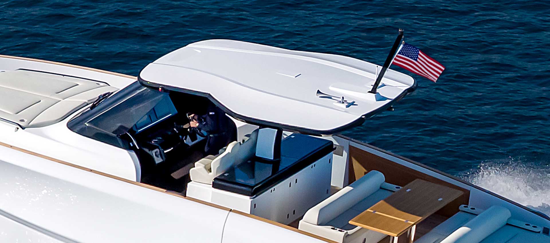 A closed windshield and extended roof ensure protection and usability in every condition - redefining year-round boating.